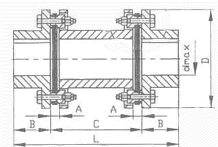 | 規(guī)格 | 公稱扭矩N.M | 許用轉(zhuǎn)速rpm | 重量kg | 轉(zhuǎn)動慣量kg.cm^2 | 主 要 尺 寸 mm | 許用補償量 |